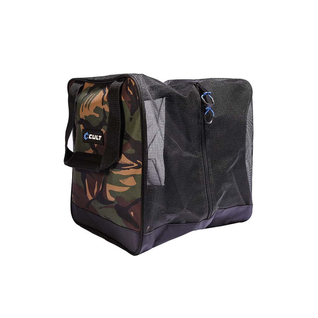 Our wader bag is perfect storage for your wet waders or muddy boots. Neoprene grab handles allow for easy carrying. Designed with rubberised mesh sides allowing waders and boots to dry out whilst the wipe clean base helps stop your bivvy or car from getting muddy and you can flip the bag over your rolled down waders on rainy sessions so you can store them next to your rods whilst keeping them dry and close by ready for that next catch!